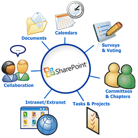 SharePoint est la plate-forme de développement Internet / Intranet / Extranet. Fondée sur plusieurs outils, SharePoint a été conçu pour développer des applications dans les domaines suivants :
